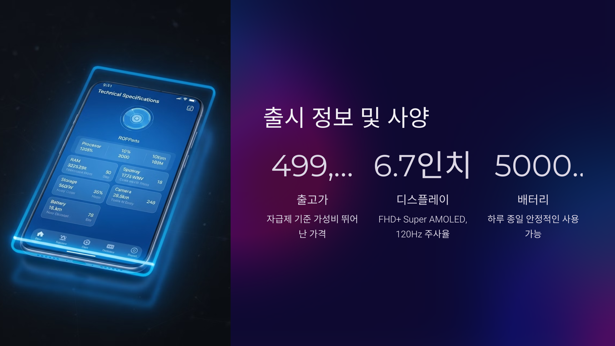 | 배터리 | 5000mAh, 25W 고속 충전 |