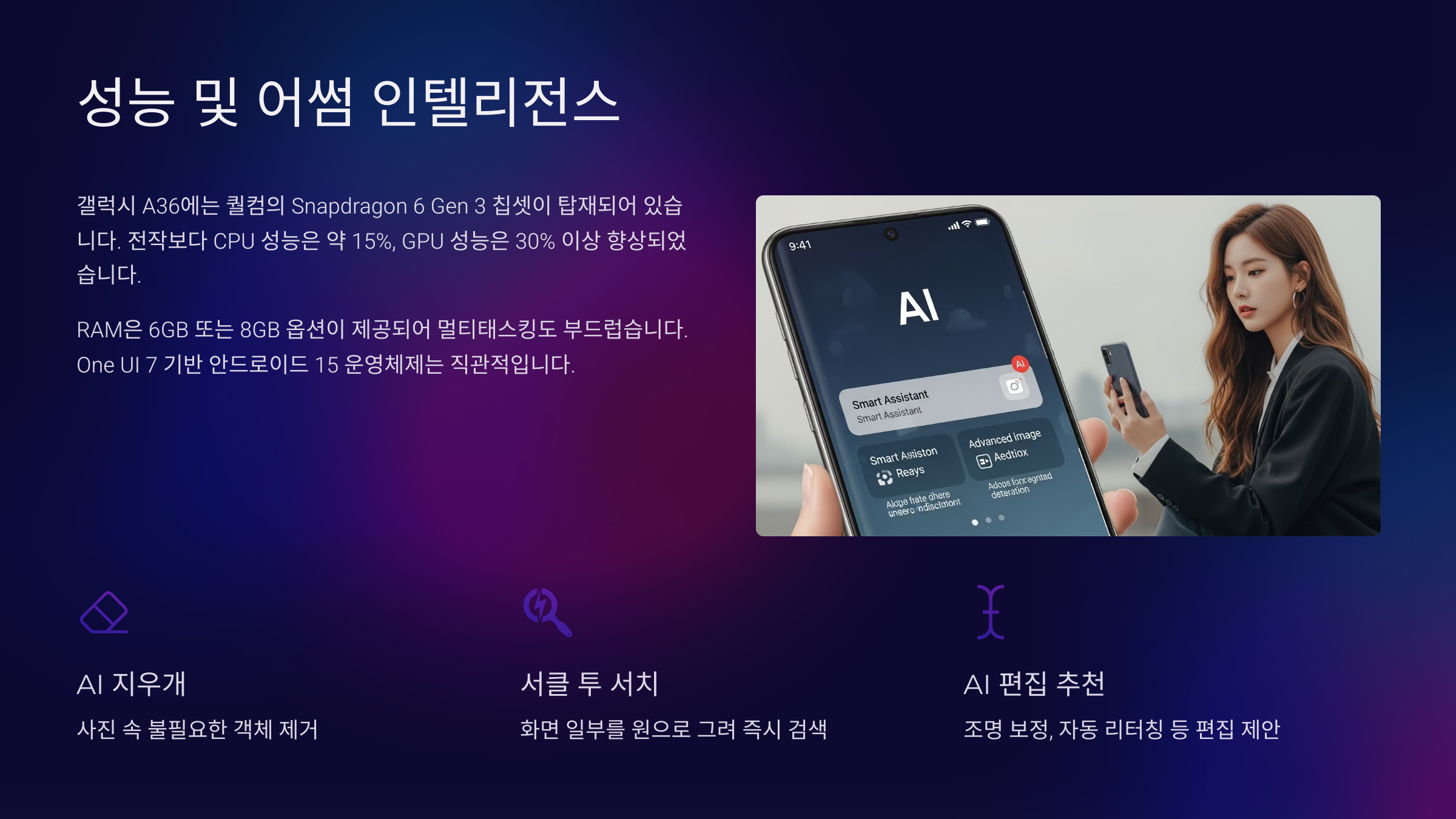 | AI 지우개 | 사진 속 불필요한 객체 제거 |